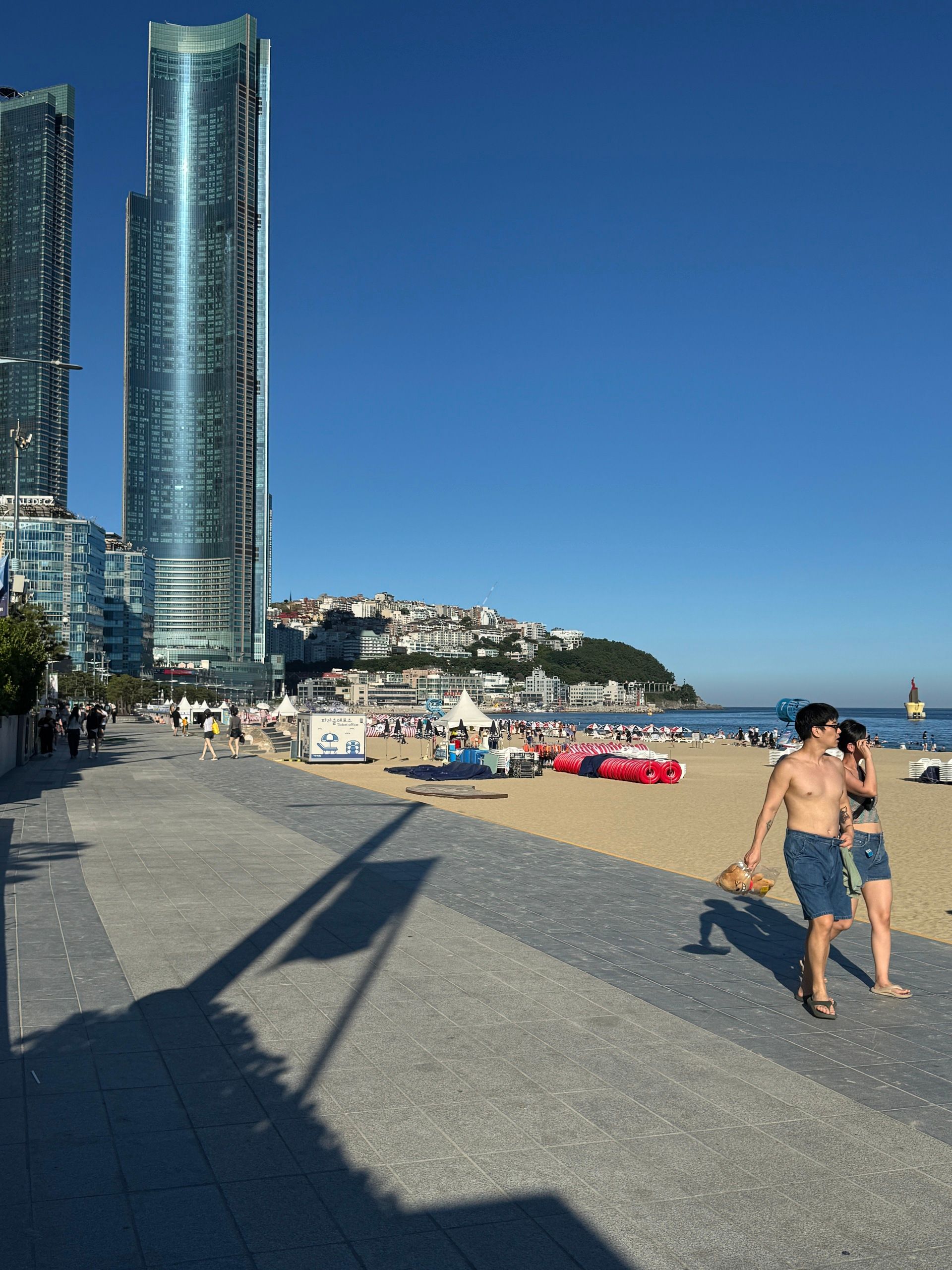 Because of that, most beaches in Korea closed their swimming season early this year. But here in Haeundae, the beach stayed open until mid-September, the only one in my country. I went swimming in early September—the water was cold, but it felt wonderful. The waves weren’t too rough, and since I had formally learned swimming before, I wore my goggles and swam freestyle each time. But each time, I could feel how much my skills had declined. With so few chances to swim, I had lost my form. I plan to take lessons again someday to retrain my breathing and stroke technique.