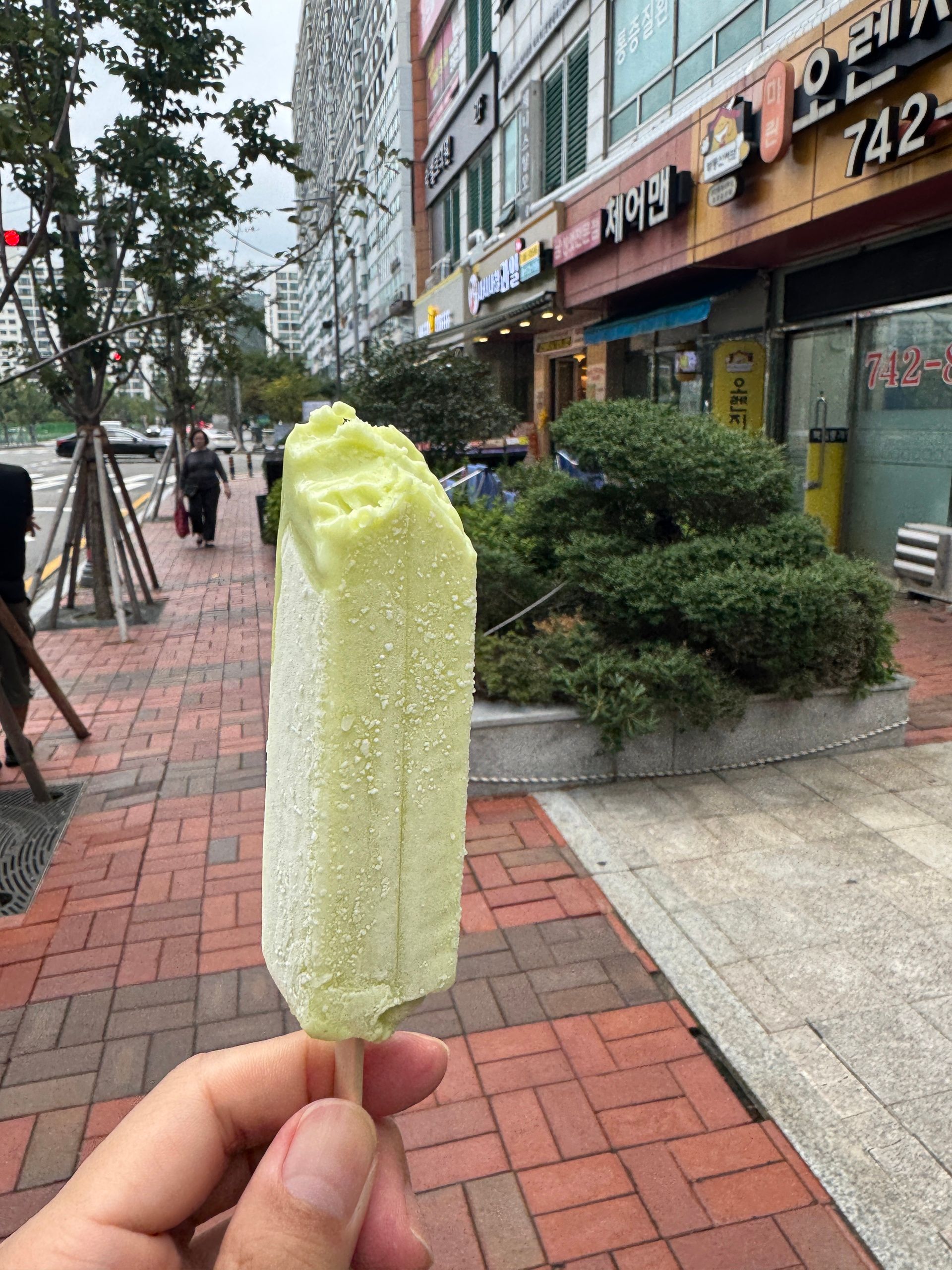 This has become a huge hit among foreign tourists lately. They say that it’s a “must-try” when visiting Korea. Personally, it’s my second favorite after (Pat ice cream )red bean ice cream. I took this photo just today (September 13, afternoon). Guess what it’s made of? Send me your answer in a reply, and I’ll reveal it in the next newsletter.